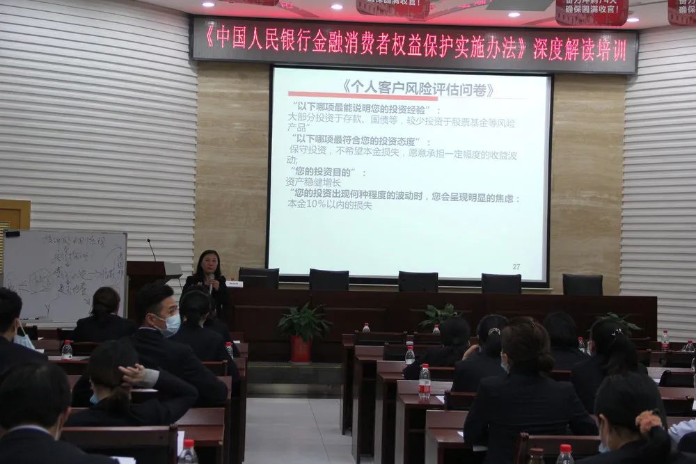 1 培训背景 2020 年 9 月 15 日,中国人民银行发布了《中国人民银行金融消费者权益保护实施办法》,今年是银行业消费者权益保护工作的重要一年,消费者的利益与银行业务发展的可持续性息息相关,因此消费者权益保护工作要从消费者切身利益出发,以改进银行业服务质量,提高金融稳定性,提升公众金融素质,支持行业发展,赢得社会尊重为目标。通过严格的行为监管,建立和维护消费者对银行业的信心和信任,以实现银行也整体安全、稳定、持续发展。 2 培训执行 ![]() 培训对象:零售业务部、零售信贷部、江南个贷经营中心、江北个贷经营中心、网络金融部、信用卡部、运营管理部消保及服务管理人员各一名、办公室消保团队、经营单位零售负责人、社区银行行长、会计主管、各经营单位投诉处理人员、理财经理、综合柜员、大堂服务人员、社区银行员工各一名。 ![]() 培训人数:134人 ![]() 培训形式:集中培训 ![]() 培训地点:浦发银行2、3楼会议室 3 培训讲师 陈丽芬 人民调解员 经济师、金融理财师 内训师 ![]() 4 培训小结 本场培训邀请了正达公司的陈丽芬老师做此次的授课老师。陈老师指出消保工作的核心是规范经营行为,保护消费者合法权益。陈老师首先全面解读了《中国人民银行金融消费者权益保护实施办法》的内容,从立法依据、适用范围、基本原则三方面进行了讲解;其次,从金融机构行为规范出发,全面剖析了消费者的八大权力,帮助大家深入了解;然后通过实际案例,讲解了金融消费争议的解决,投诉处理的程序,明确了银行以及其它机构的职责;最后,通过法律法规,强调了法律责任,告诉大家有法可依。学习使人进步,总结使人更近一步。经过此次培训,相信大家都有所收获,希望大家在日后工作中能够学有所用,将培训所学带到各自的工作岗位中,为浦发银行树立良好的品牌形象。 5 现场照片 ![]() ![]() ![]() ![]() ![]() ![]()